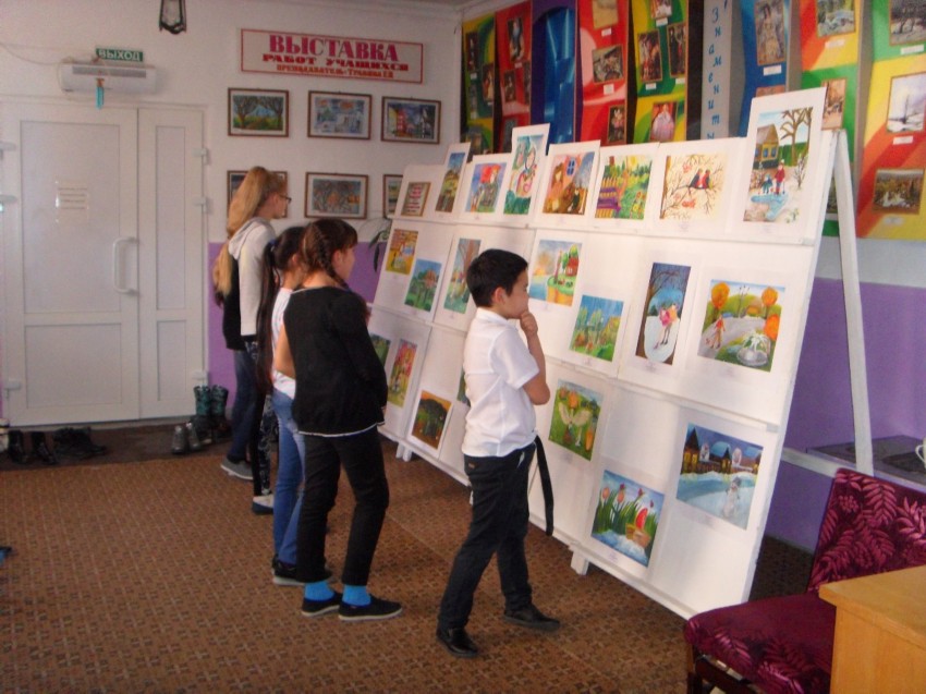 В холле школы представлена выставка работ учащихся школы «Война и мир глазами детей».